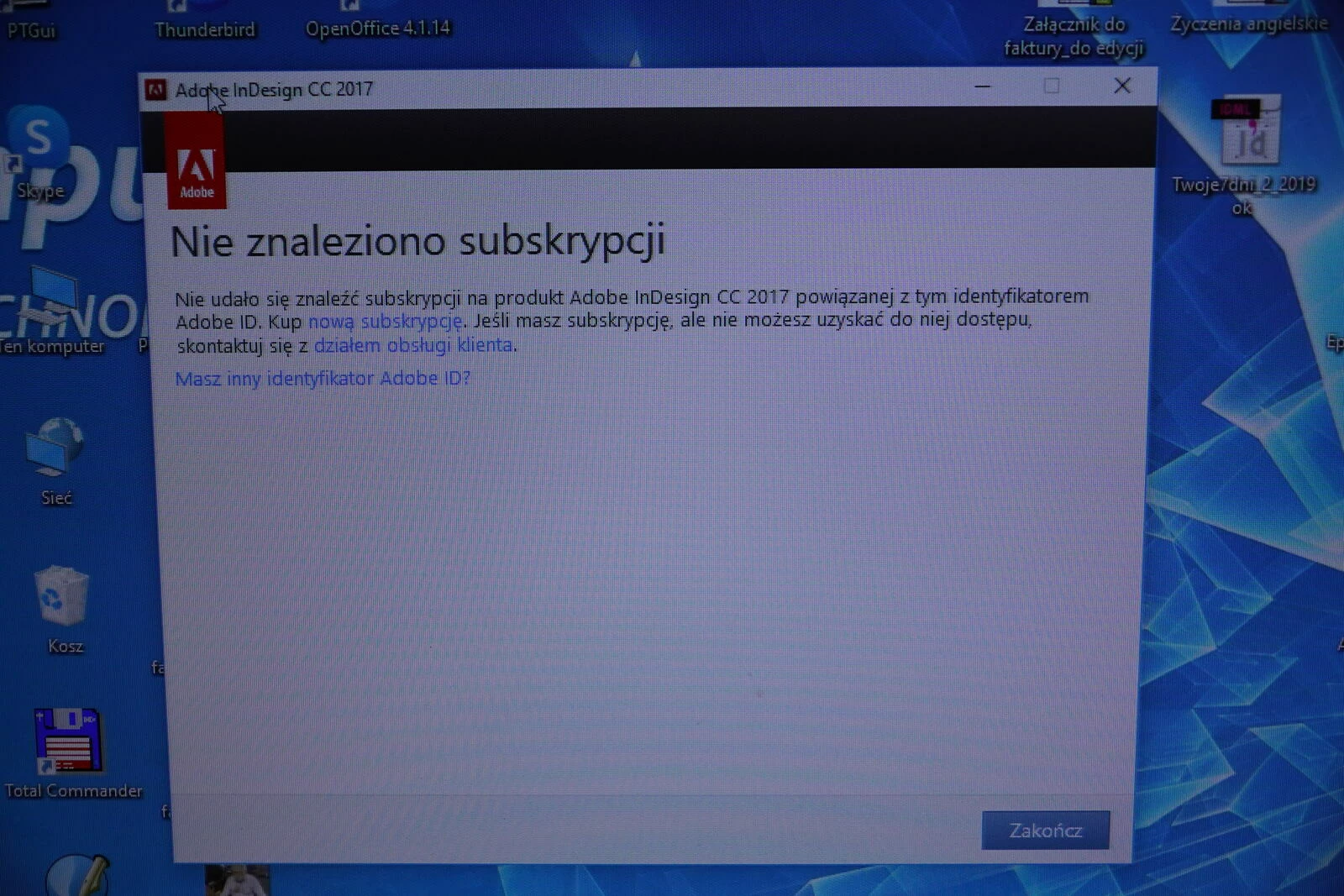 I have InDesign 2017 installed on my computer, but unfortunately it doesn't want to work. Why?
