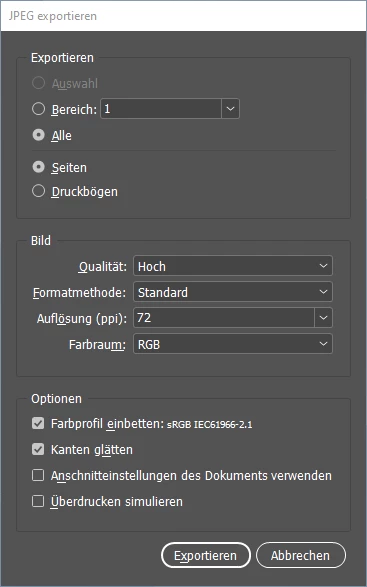 Mit einer INDD 2018, die bis vor 3 Wochen noch installiert war, hatten wir bei gleichen JPG Exportoptionen (Screenshot 3) ein sauberes weiches Ergebnis (Screenshot 2). Aus meiner Sicht hat Adobe hier im Hintergrund etwas verändert. Weiß jemand Rat?