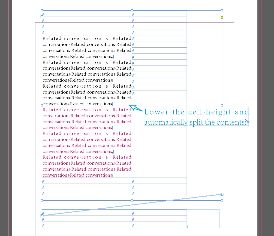 If there is too much content in a cell, how can I automatically split part of the content to the next page?