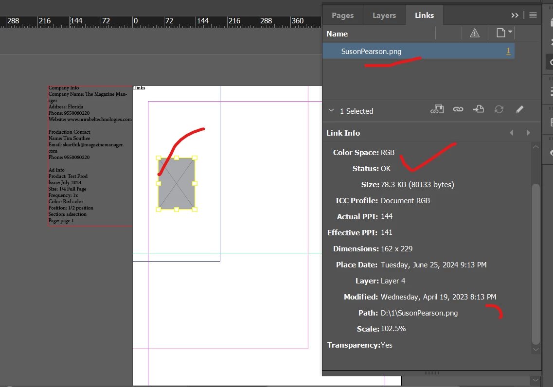 The prepared indd file shows image as a placeholder, image is available and status is also ok , when we edit the page , the image is displayig , what is the mistake my script.
