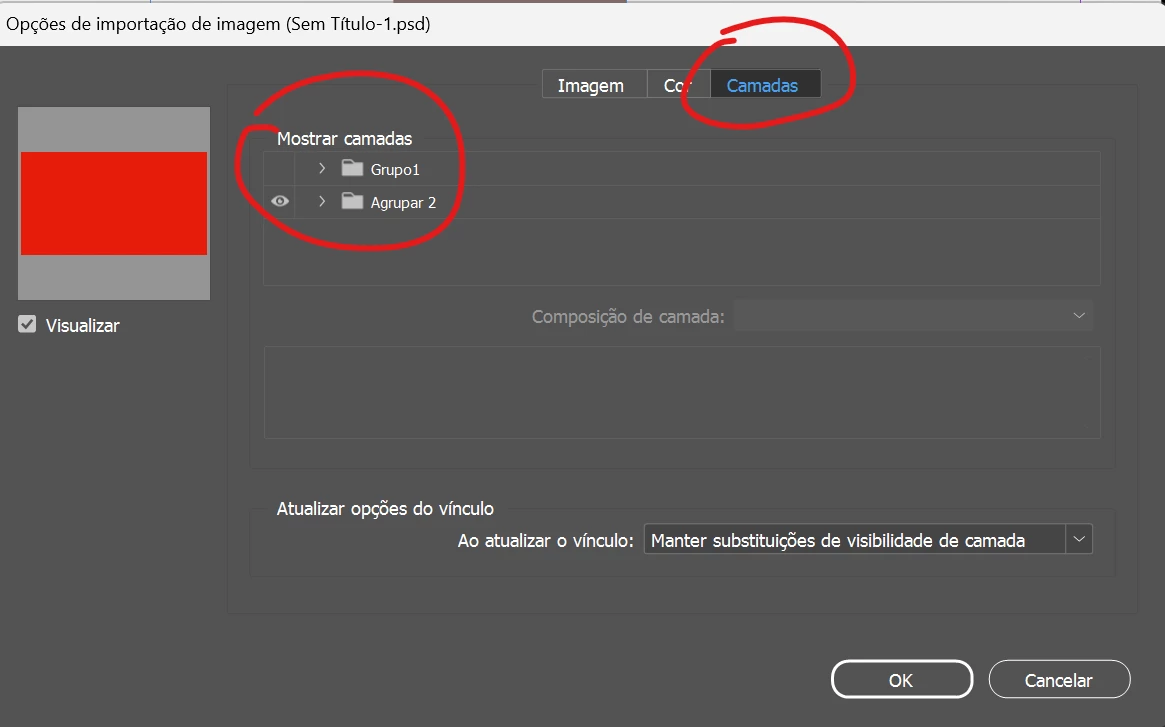 Como faço para importar somente um artboard do photoshop no indesign?