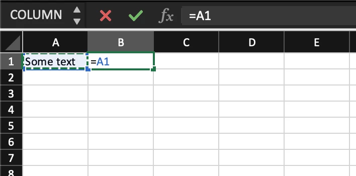 2. In cell B1 add formula "=A1"