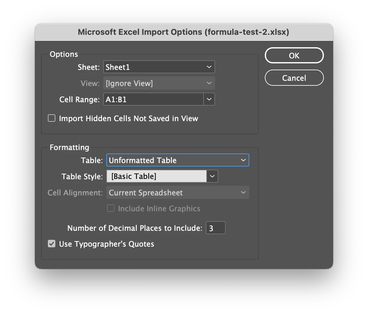 Hi all, I'm experiencing a bug where any formulas that reference a text value in my excel files import into Indesign as "-1". Can anyone confirm this bug on their system? If so, please vote for this bug report.