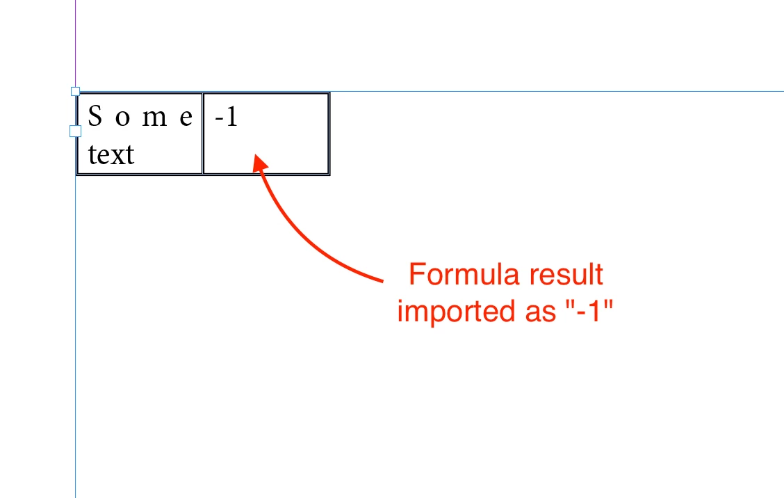 Imported Excel unformatted table text-based formulas import as "-1"