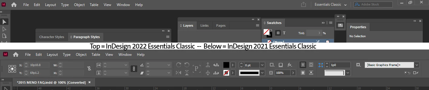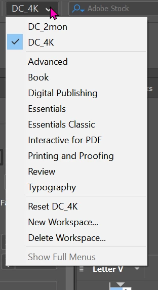In Indesign 2022, how do I get the Essentials Classic Work space back on top where it should be?
