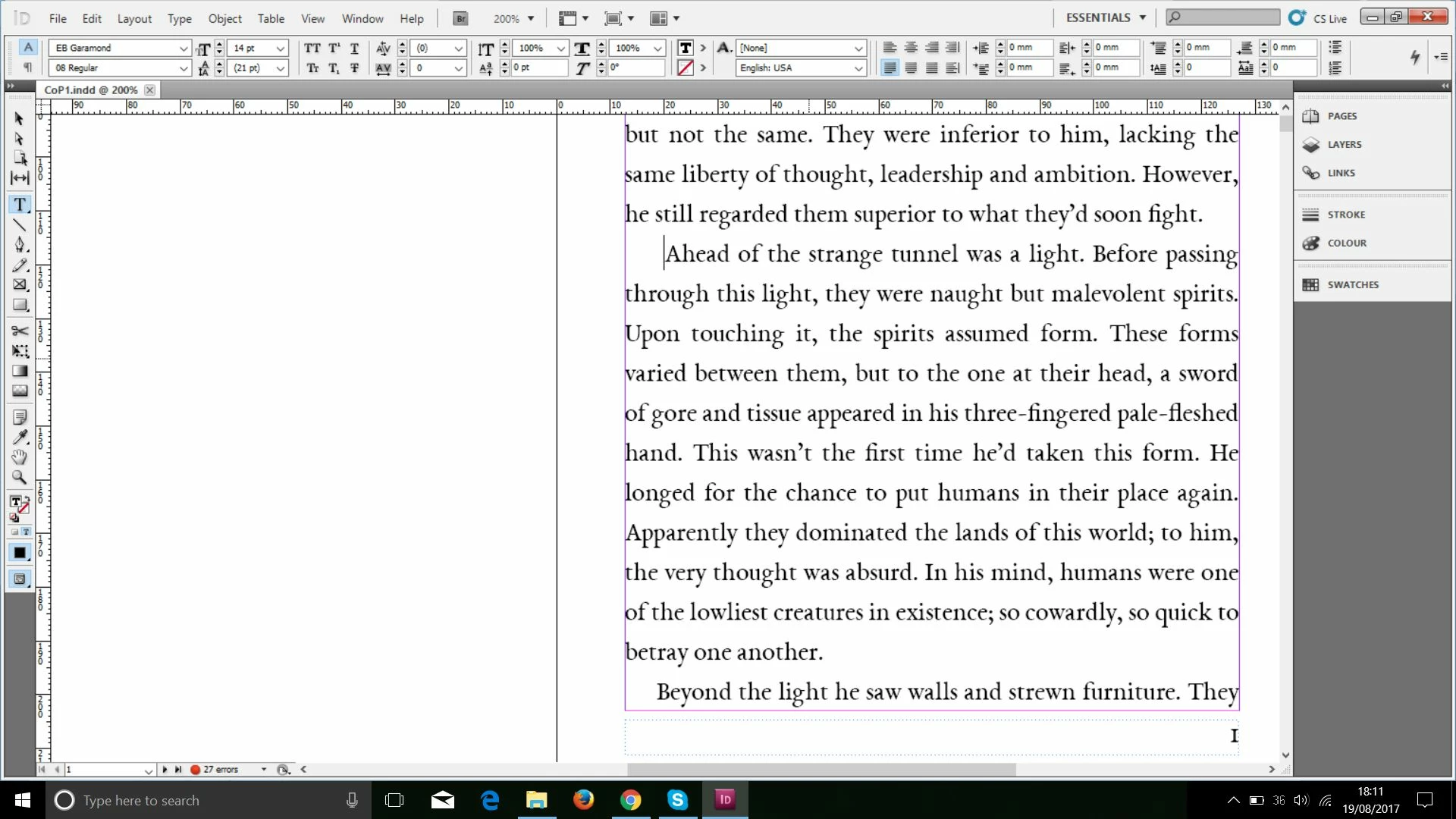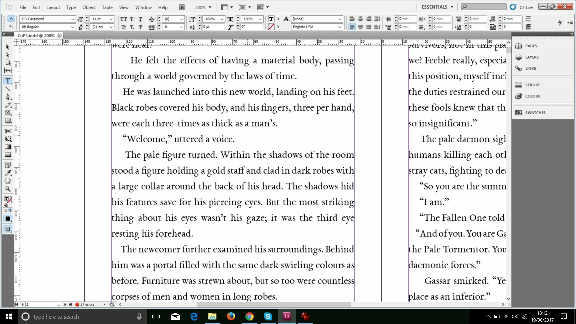 I'm quite new to InDesign, and have recently been formatting my novel. I imported a word document into InDesign, and began manually changing anything that didn't come up the way I wanted to better match the appearance I want the document to have.