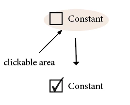 I've been searching without success to find a way to extend the area that can be clicked ("hotspot"?) to activate beyond the area of the box/button itself and include the label. Is this something that can be done in InDesign? Is it something possibly tweakable in Acrobat?