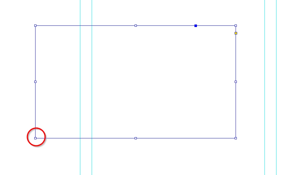 Here is an image of a rectangle in InDesign, with one of the grips I would like to increase in size circled in red.