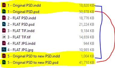 My assumption was that InDesign generates thumbnails from the placed images. I understand that CMYK vs RGB or opaque vs transparent would lead to some differences in internal thumbnail size, but these are huge differences. Does anyone know what causes these size differences or if there is a way to help reduce the PSD image thumbnail size.