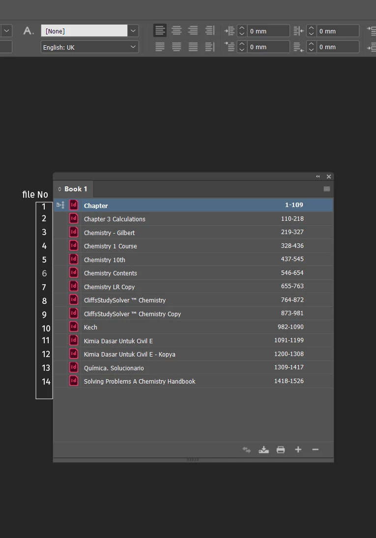 indd files show numbers in book?