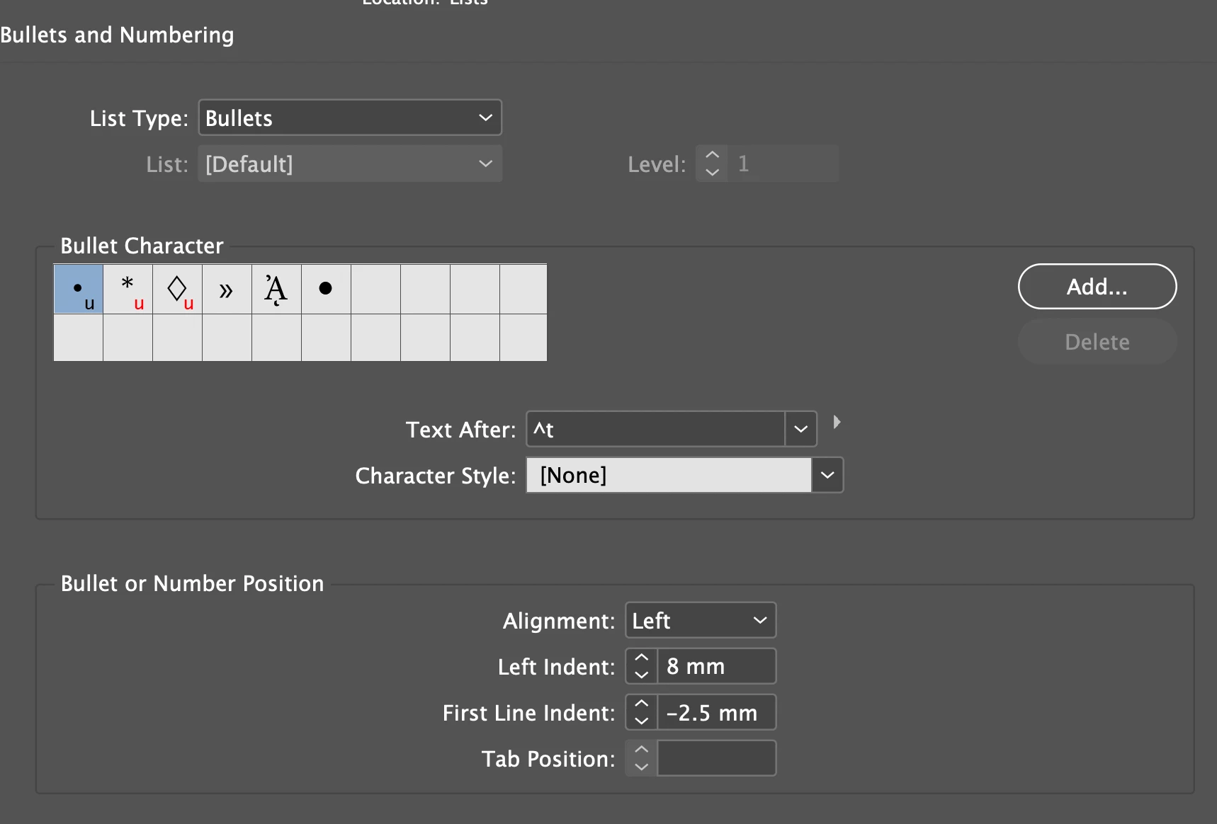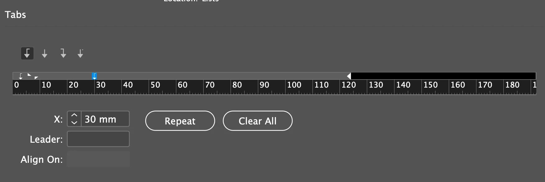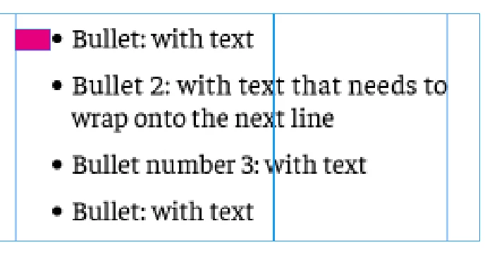 It's indented from the body text but I would like everything after the : to be aligned too. I can't seem to get the tab align for everything after the : to work (so everything after the : starts at the blue line) WITH the indent for the entire list.(so the list remains indents by the same amount - pink box)