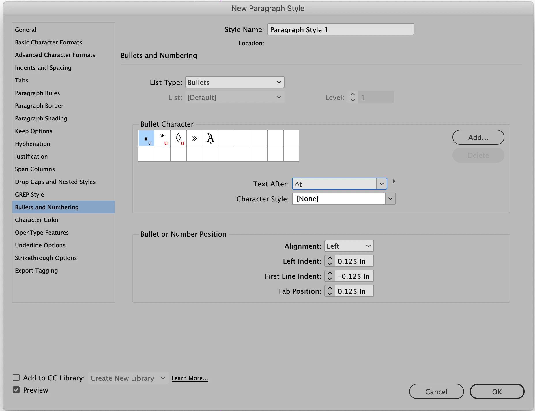 Hi, I am trying to setup paragraph styles that include first line indents and bullets but it looks wrong?? Can someone help me with what the general protocol is for this type of situation, thanks - See sample...