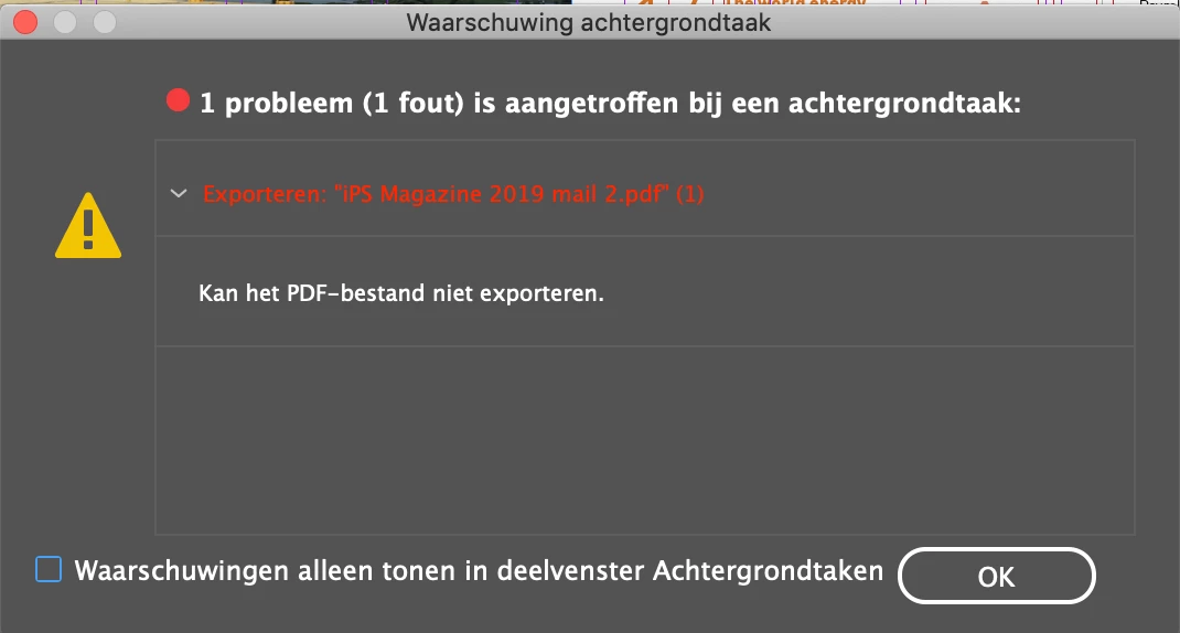 I installed the new version of InDesign 2020 but now I cant't save my file to PDF. I get an warning: 'Can't save to PDF' Big problem, the printer needs the file asap! I didn't have this problem in version 2019. I cannot go back because the program won't open the file because it was opened in a newer version...