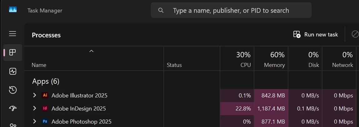 InDesign 2025 (20.0.1) - High CPU when idle and while working (Windows 11)