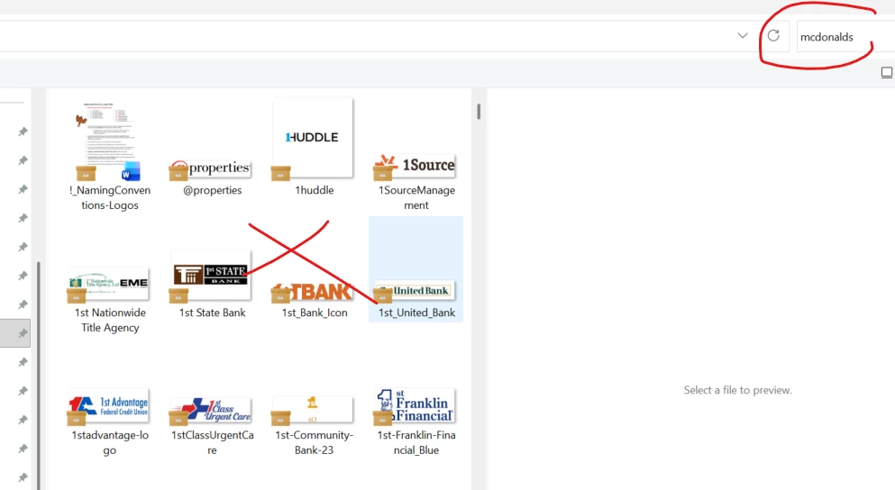 When I click CTRL+D (place tool) through InDesign and try to search something in my folders, the search tool doesn’t work. I can be in the logos folder and type in “mcdonalds” and it wont search for mcdonalds logos.