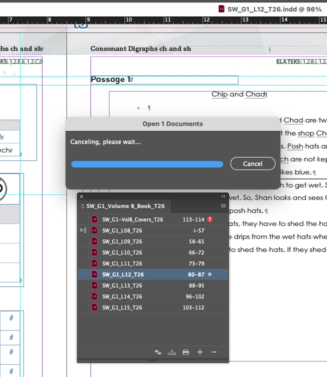 InDesign 2026 hangs on opening some documents, can't Cancel