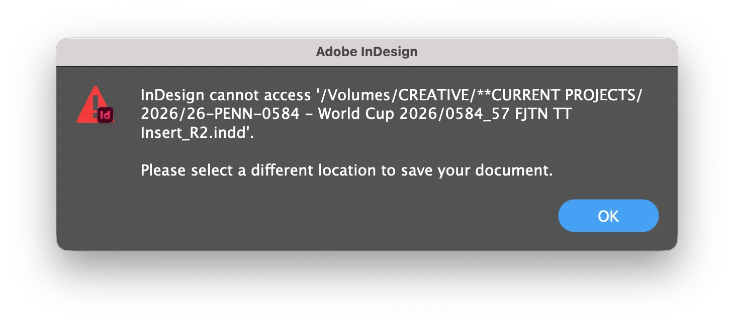Indesign 21.3 / OS Tahoe 26.3.1 / Synology server