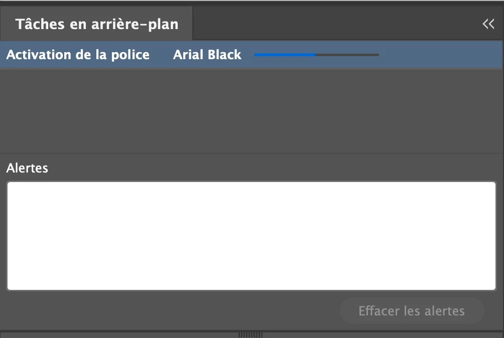 Dans la fenêtre "Tâches en arrière-plan", j'ai 2 lignes "ajout d'une police". La première ligne a une ligne de progression qui tourne en boucle et la 2ème ligne est "En file d'attente..."