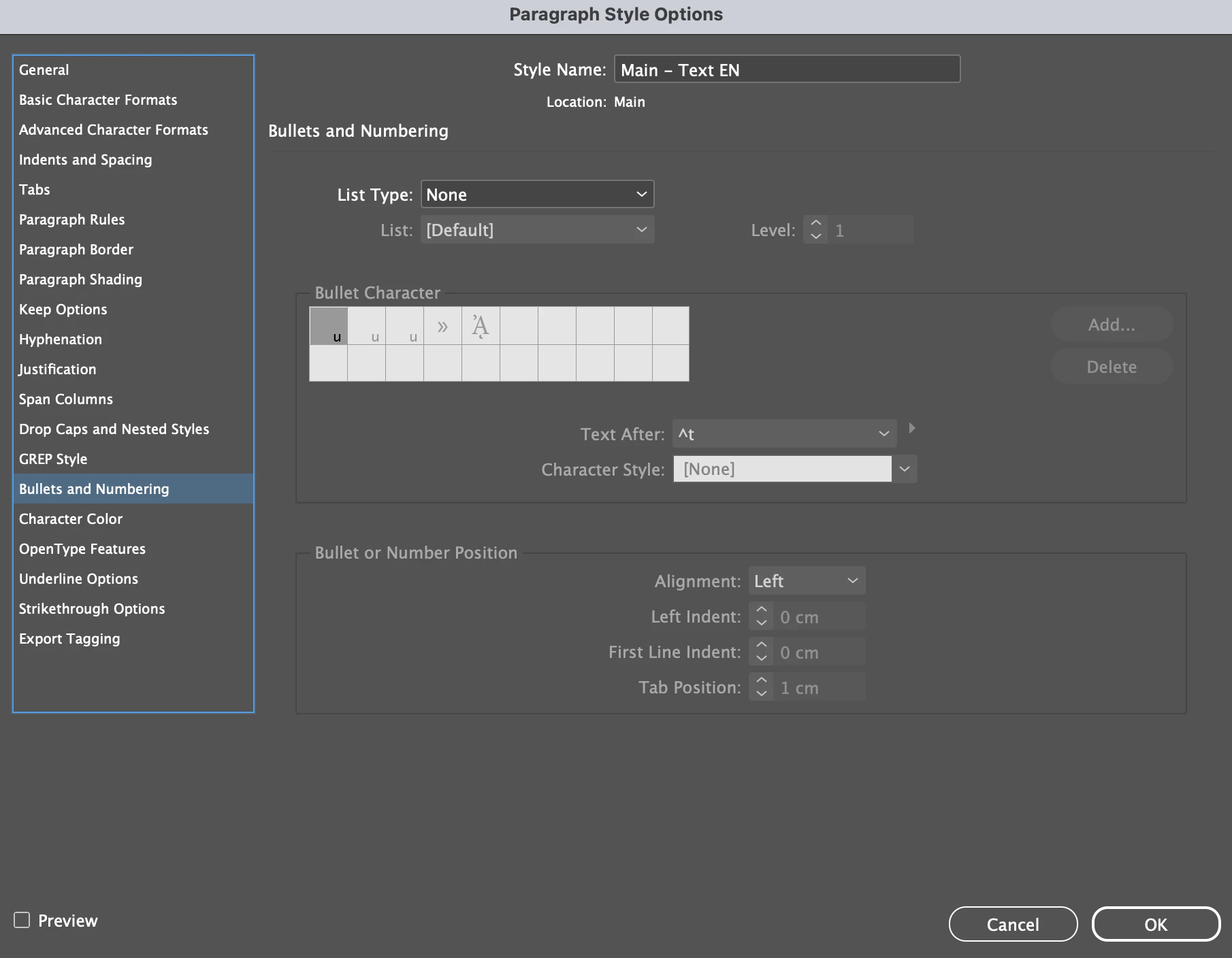 I already set tabs but no for any bullets but when I tab twice its appear number bullet.