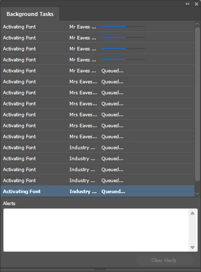 The other thing I see is the the background tasks shows a list of fonts to activate and no progress is ever made.