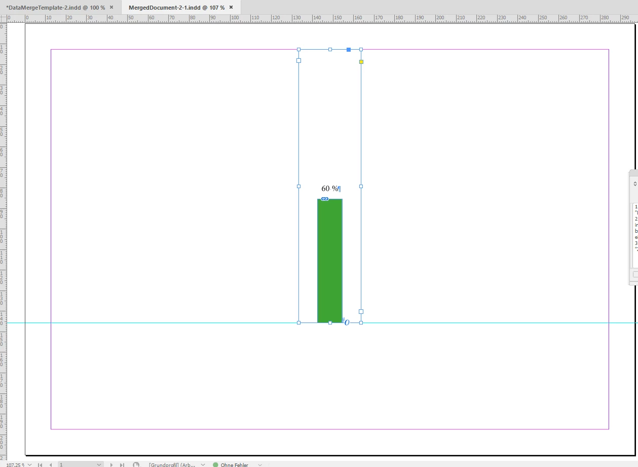 This is the situation I have at hand. I am creating, several hundred, reports using InDesign. I generated images to create what appears to be Bar Graphs to use InDesign's Data Merge. I have the images coming in, and the percents text coming in, The only issue is that the percents text only sits in a static position. I was wondering if there was a process or function I could do that would adjust the text to have it hovering just above the coloured portion of the Bar for the graph based off of the variable information that it looked at. To trick the appearance of the Percent Text is moving along with the Bar Graph Image.