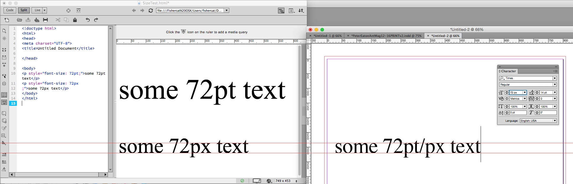 InDesign CC 2014 - fontsizes pt vs. px