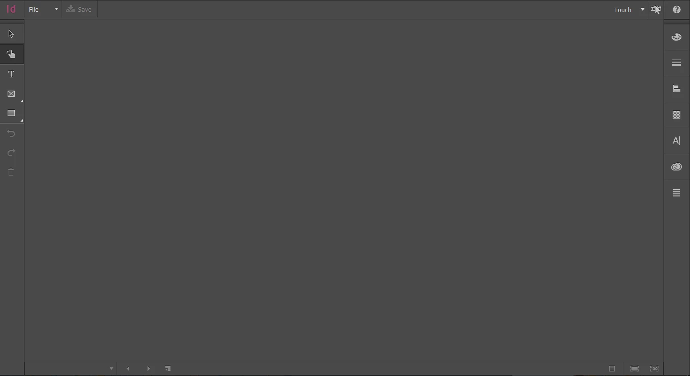 And here is a snippet of my InDesign screen after opening. Where do I go to get the menu that non-touchscreen users would have?