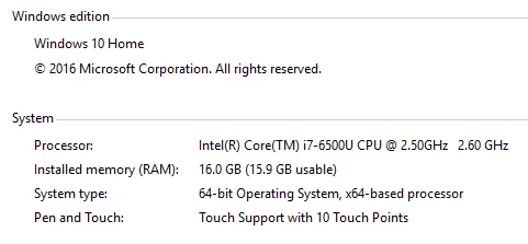 I'm working with Windows 10. Here's a snapshot of my system info: