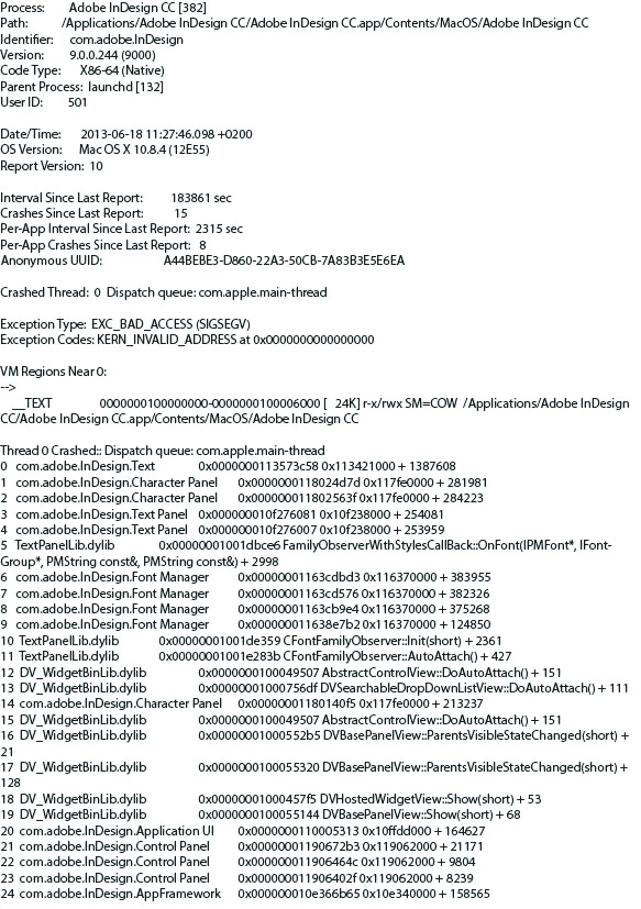 Can you share the crash log with us for InDesign CC ?