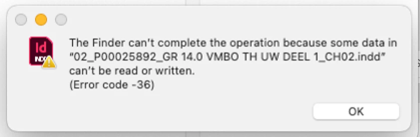 Q: Also, as far as I understand, the copying problem doesn't actually involve InDesign. The file becomes corrupted while being copied by the Finder, as a result of which InDesign can crash on an attempt to open such a corrupted file. Is that correct? yes correct.