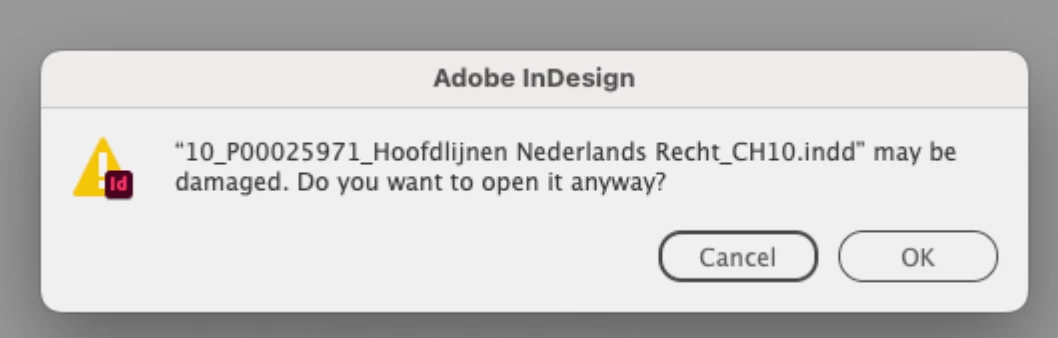 We are again encountering an InDesign corruption issue. This time, we are using Adobe InDesign CC 25, and while making corrections, the file became corrupted.