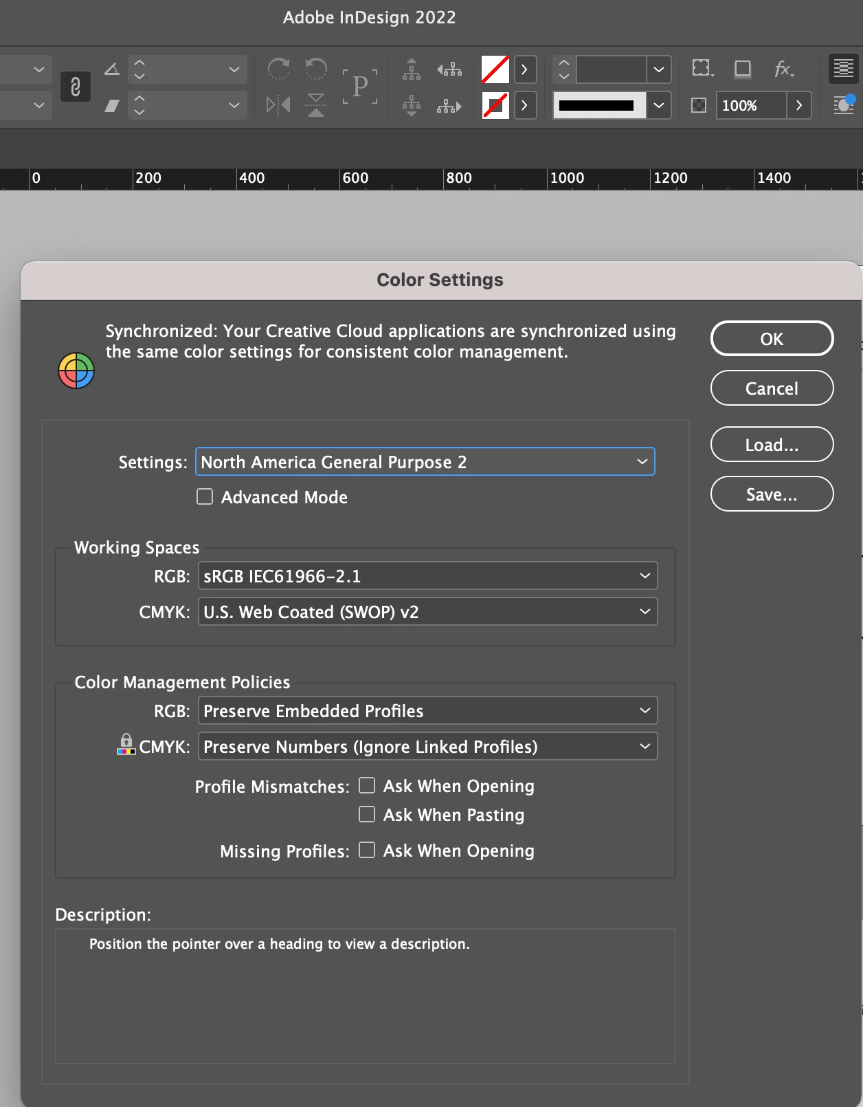 I'm going crazy with color issues in InDesign. I have read all the articles about color management but haven't solved my issue. I'm using InDesign and Illustrator 2022. Have defined in Bridge Color Settings: North America General Purpose 2.