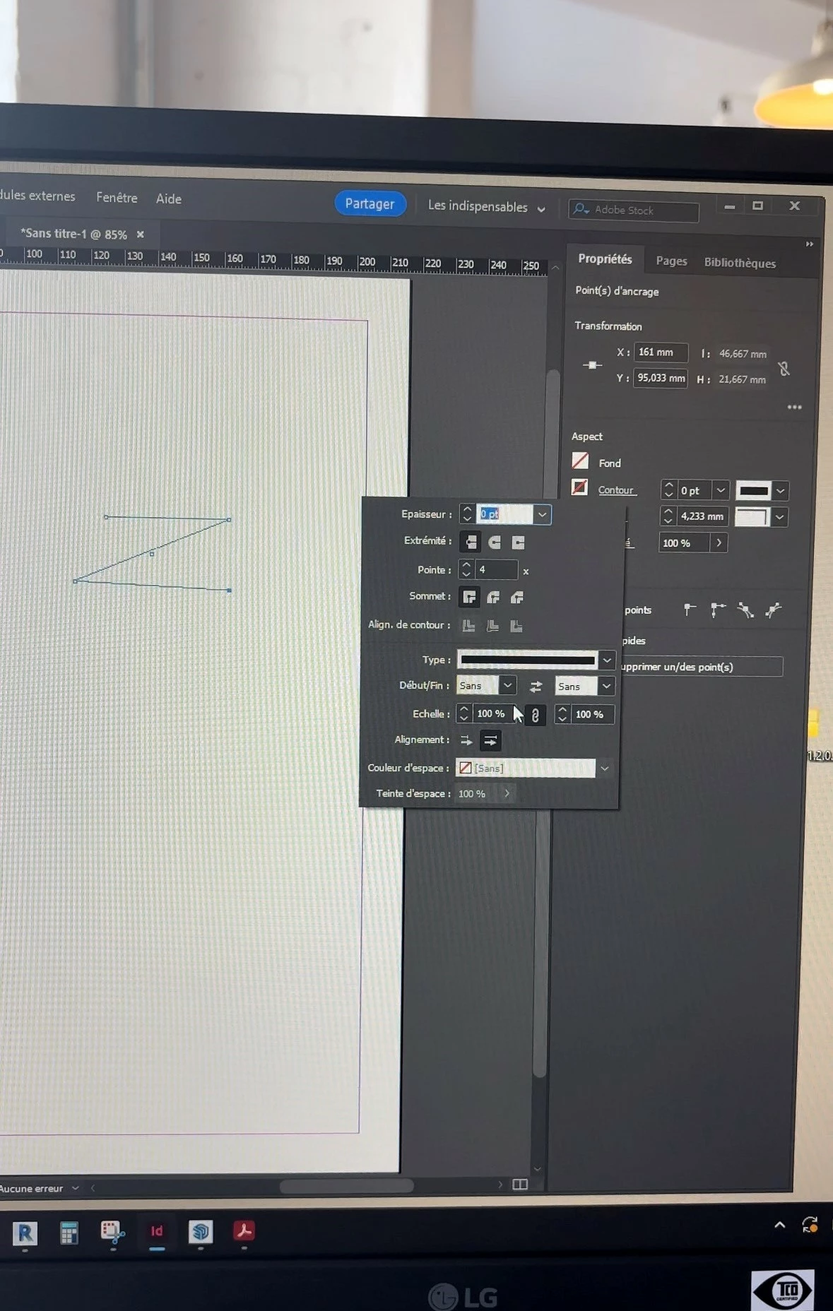 I can draw a shape or line and change the thickness, color, cap, alignment, join style, and miter limit. When I go to change the style type from a solid stroke to any of the options available in InDesign's drop-down, the program crashes immediately. It also crashes if I try to change any of the endcaps to one of InDesign's options, like an arrow point. File size does not seem to impact it; I can start a brand new document and try to create a dashed line, and it will crash.