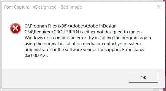 InDesign CS4 plug in not designed to run on Windows.