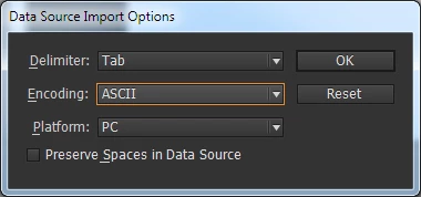 But I need to set Data Source Import Options (see screenshot of a dialog window) programmatically, with Script.