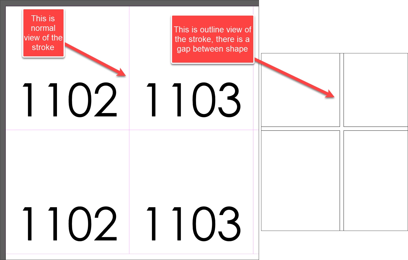 When I do the data merge in Indesign with Text and square shape, there are gaps between the square shape, it's not joining for the laser cuts. It looks fine in normal view, but in the "outline" view we can see the gaps. How can I remove the gaps between shapes?