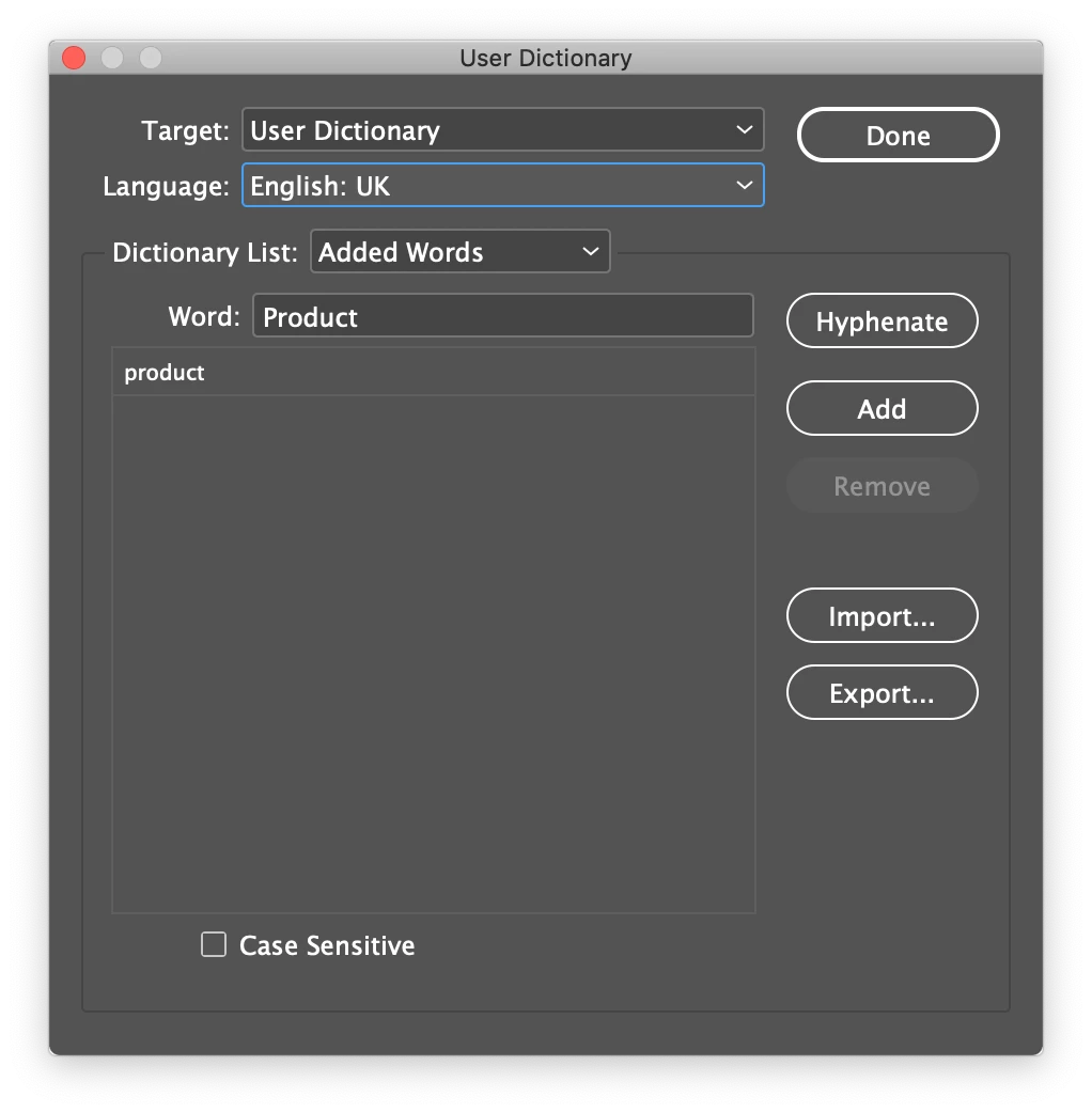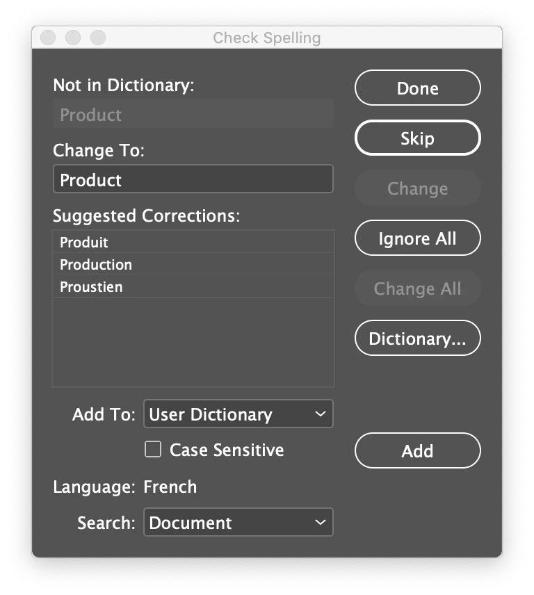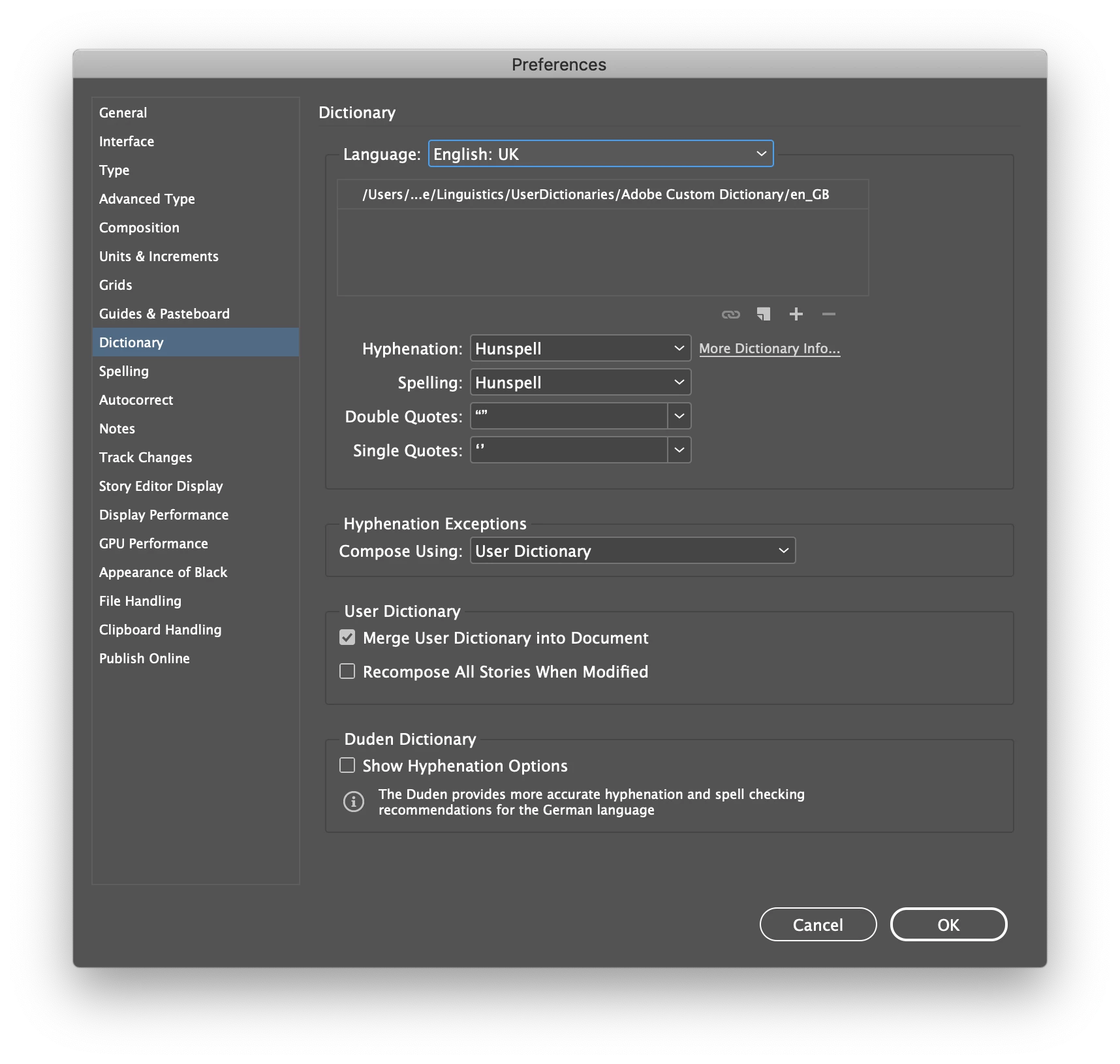 Indesign Dictionary