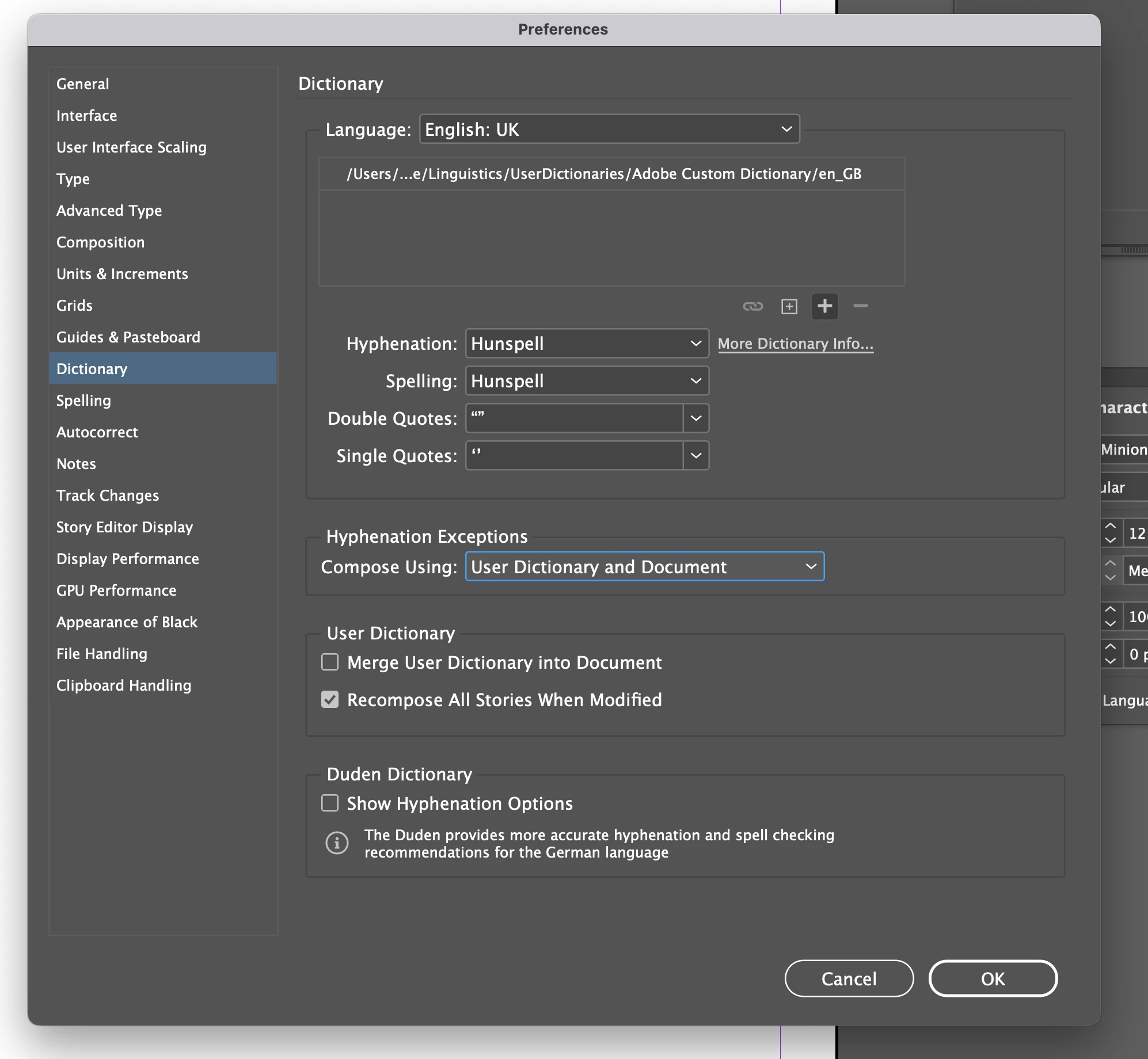InDesign Dictionary