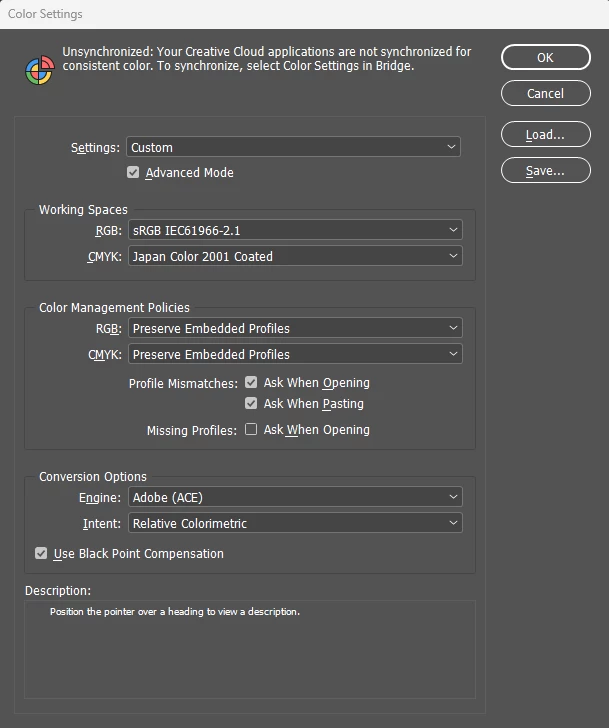 This situation happens when working with both CYMK and RGB. Reds and magenta seems to display the closest to the actual colours - the problem is worst with blues.