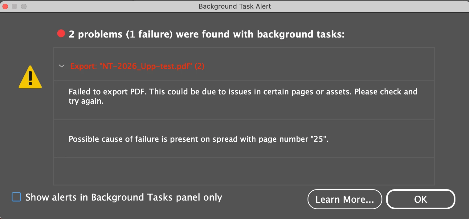 InDesign Fails to Export Full Document to PDF but Single Pages Export Successfully