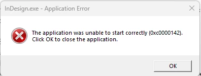 InDesign Fails to Launch After Update on Windows 11 with Error 0x0000142