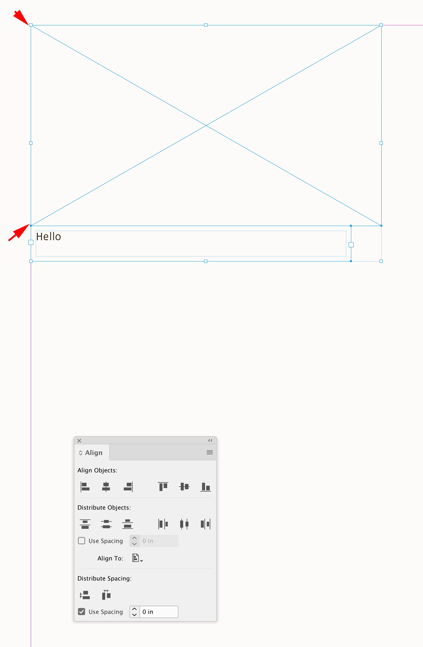 Simple example. I have an image frame and a text frame. The text frame contains the caption for the image. I want the text frame to sit at the bottom of the image frame. The image frame is a placeholder, because each page will have different size images. So the captions need to move with the image dynamically.
