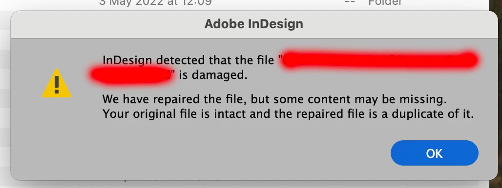 InDesign ‘File is damaged’ message