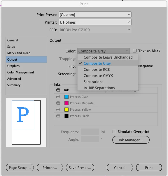 Indesign file printing in grayscale