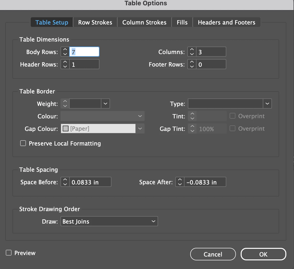 Indesign flowing table borders
