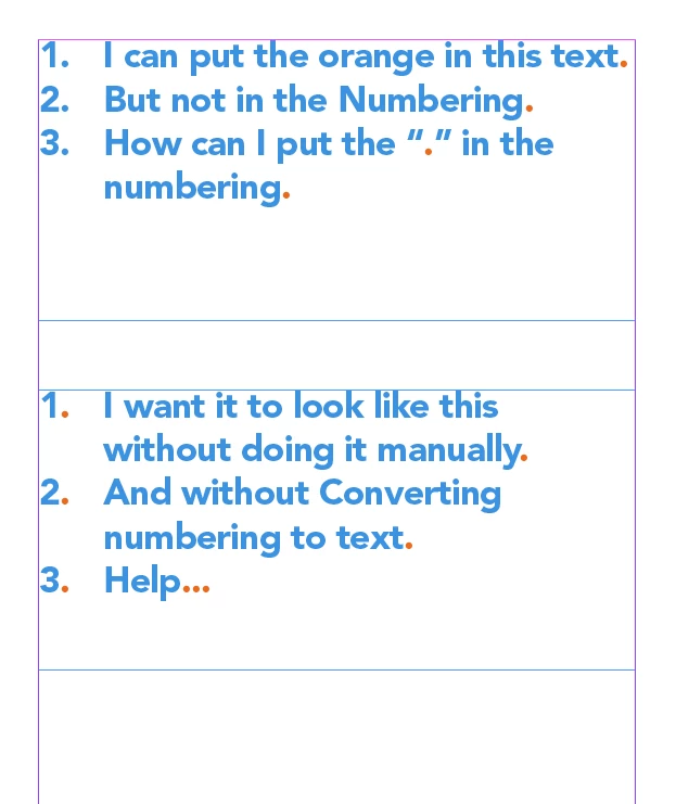 I want to give the dot on the numbering another color. I don't want to do it manually anymore cause it's too much of work.