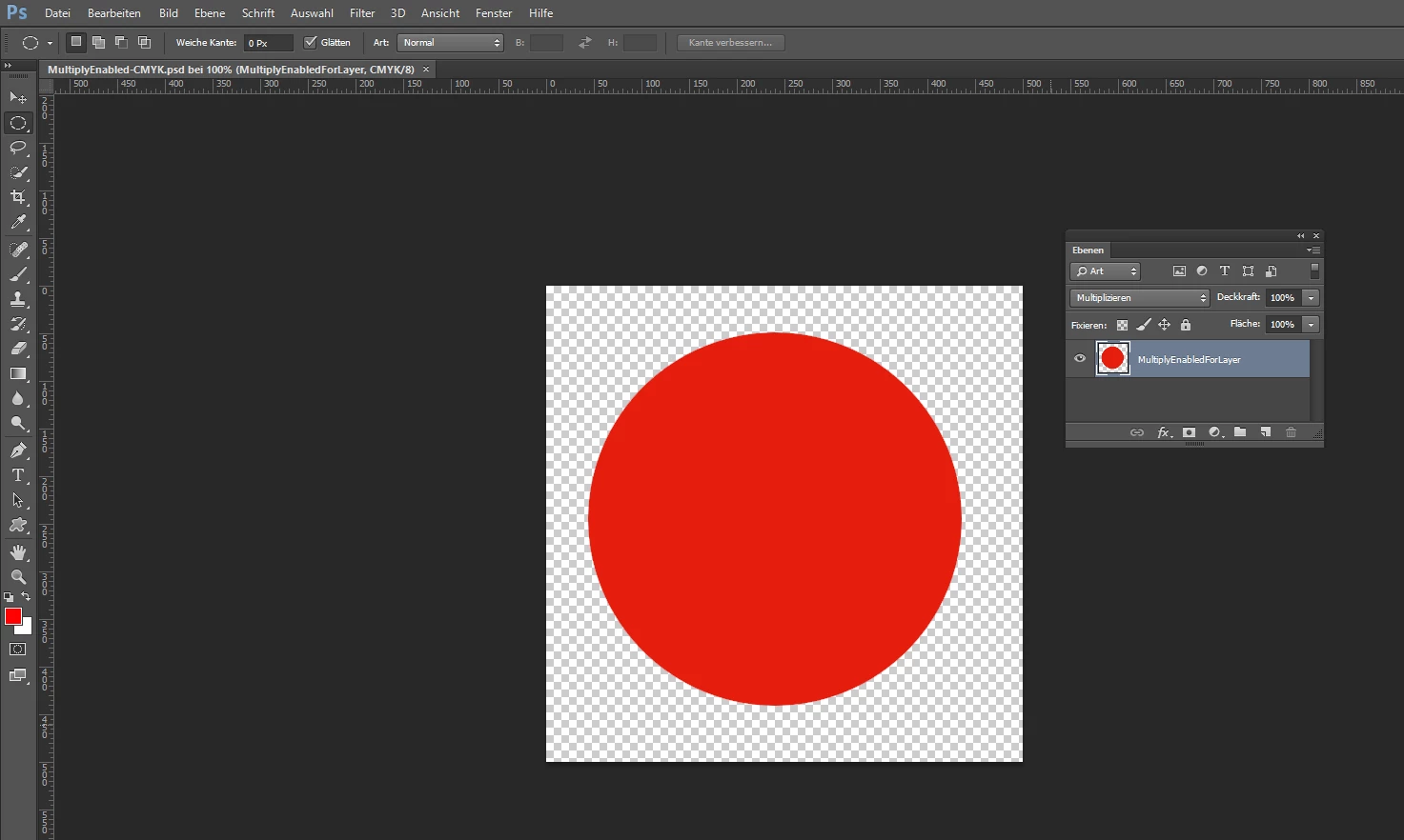 A very simply PhotoShop document. One layer. Layer effect set to "Multiply":