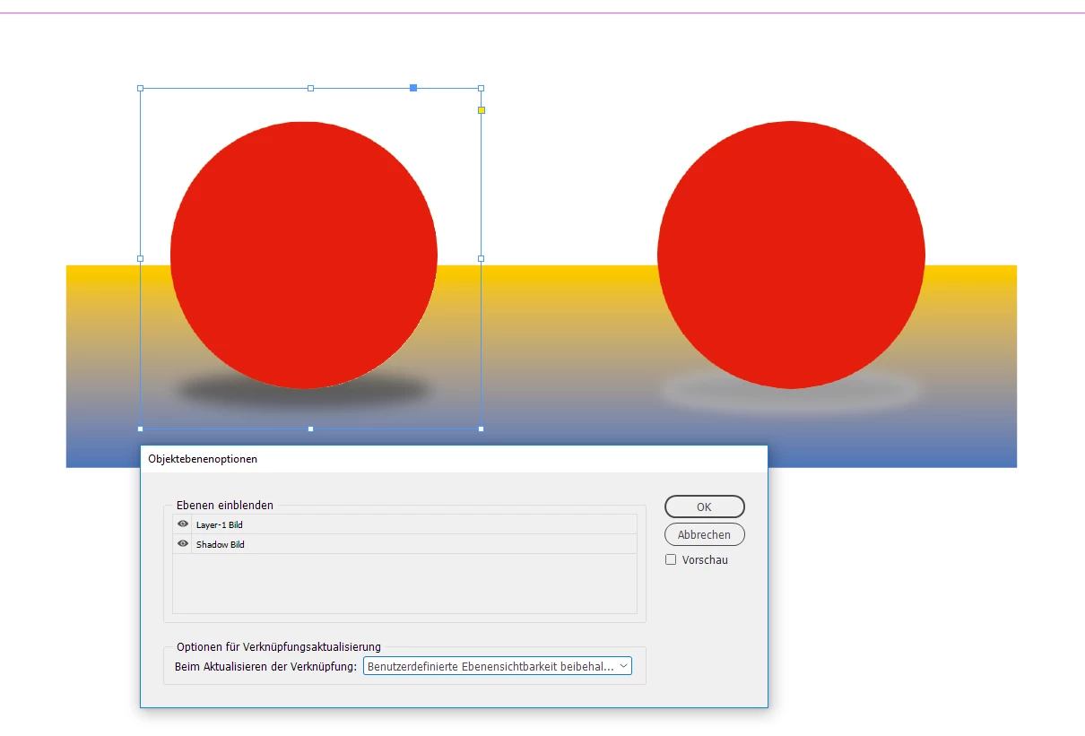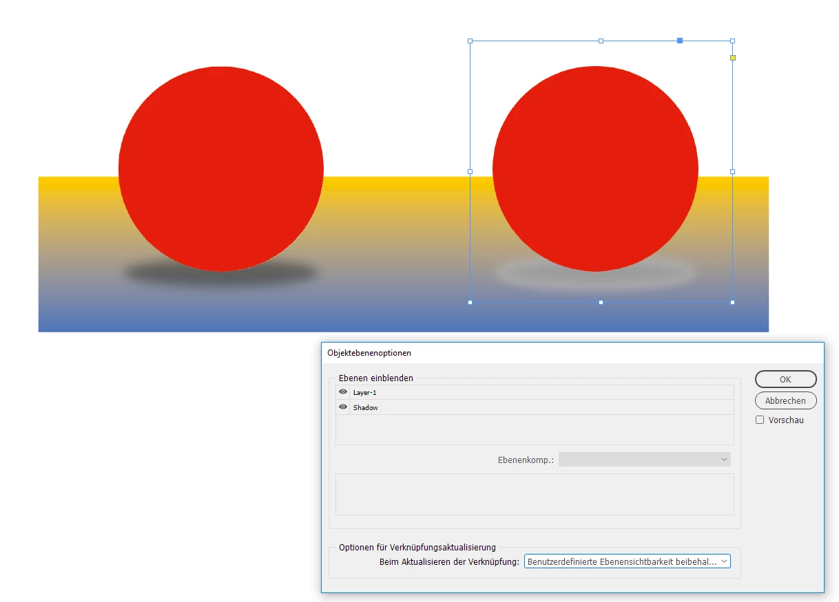 Then save as AI with PDF enabled and place the AI file. Then the applied layer effect interacts with other InDesign contents on the page.
