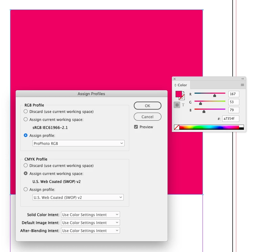 Why is this not consistent and how can you design something in InDesign if you can't even see the colors correctly in your design? My request would be that Adobe makes the apps show the colors consistently everywhere, for starters within the same program.
