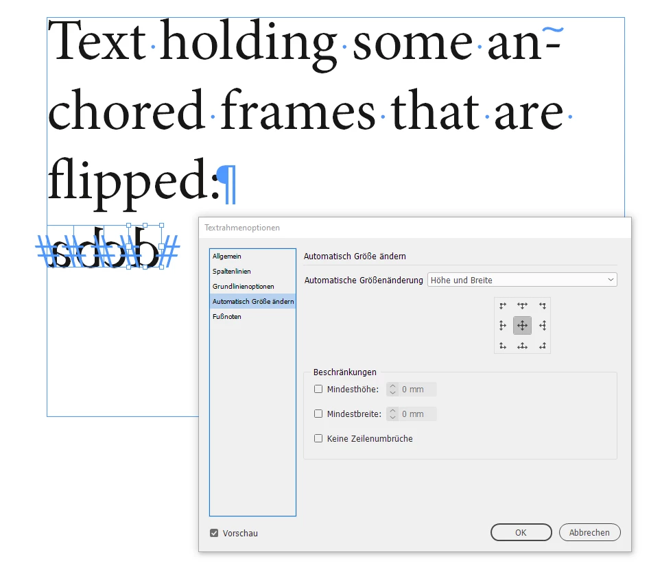 "…Could you please elaborate how to "use anchored text frames that are flipped." …"
